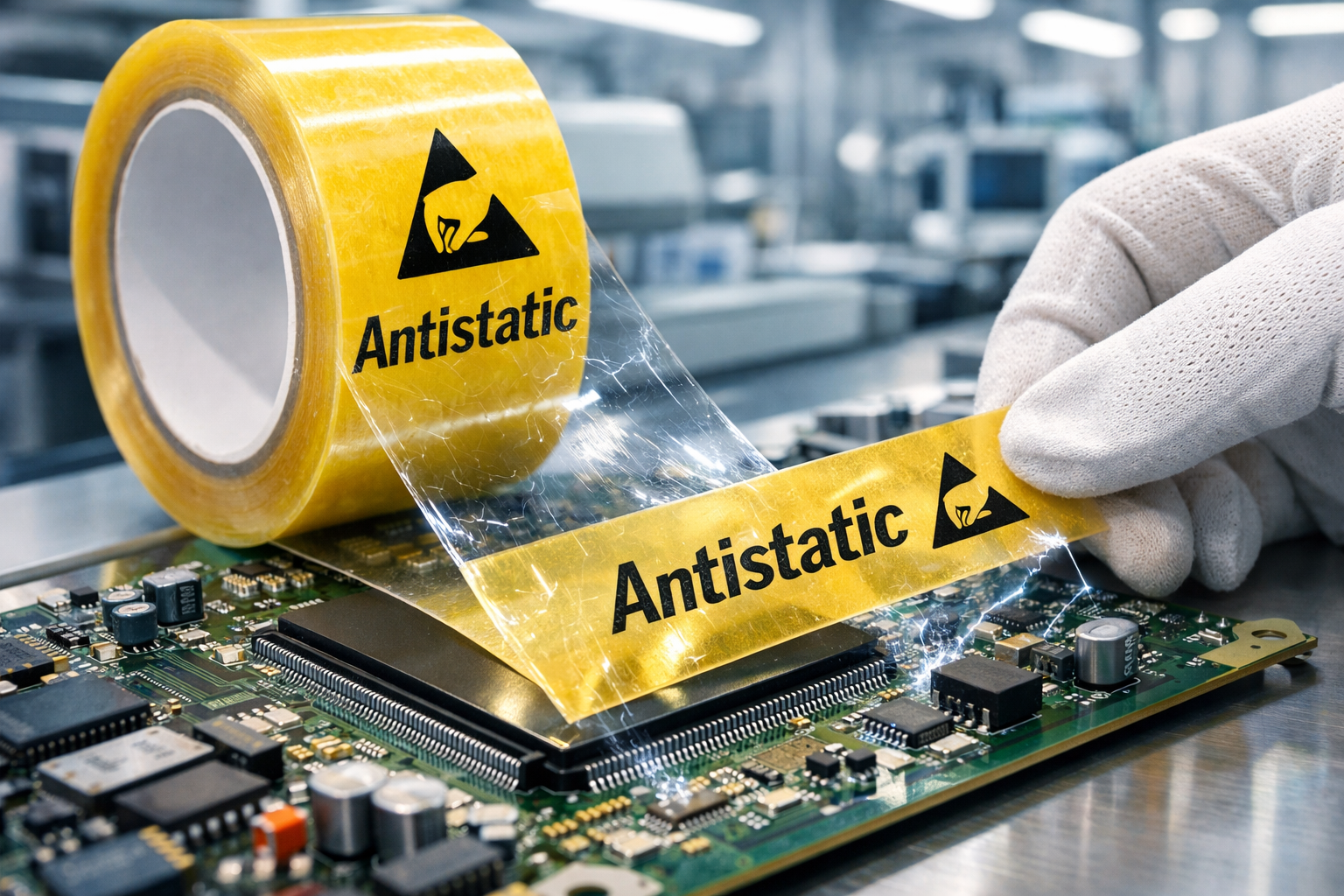 Ejen antistatik dalam pita pelekat melaksanakan pelbagai fungsi yang memberi manfaat secara langsung kepada pengeluaran elektronik. Mereka mengurangkan pembentukan statik semasa pengendalian, pemasangan dan proses pembungkusan. Ini penting untuk mengelakkan nyahcas elektrostatik (ESD) yang boleh merosakkan cip mikro, papan litar dan bahagian elektronik sensitif yang lain.